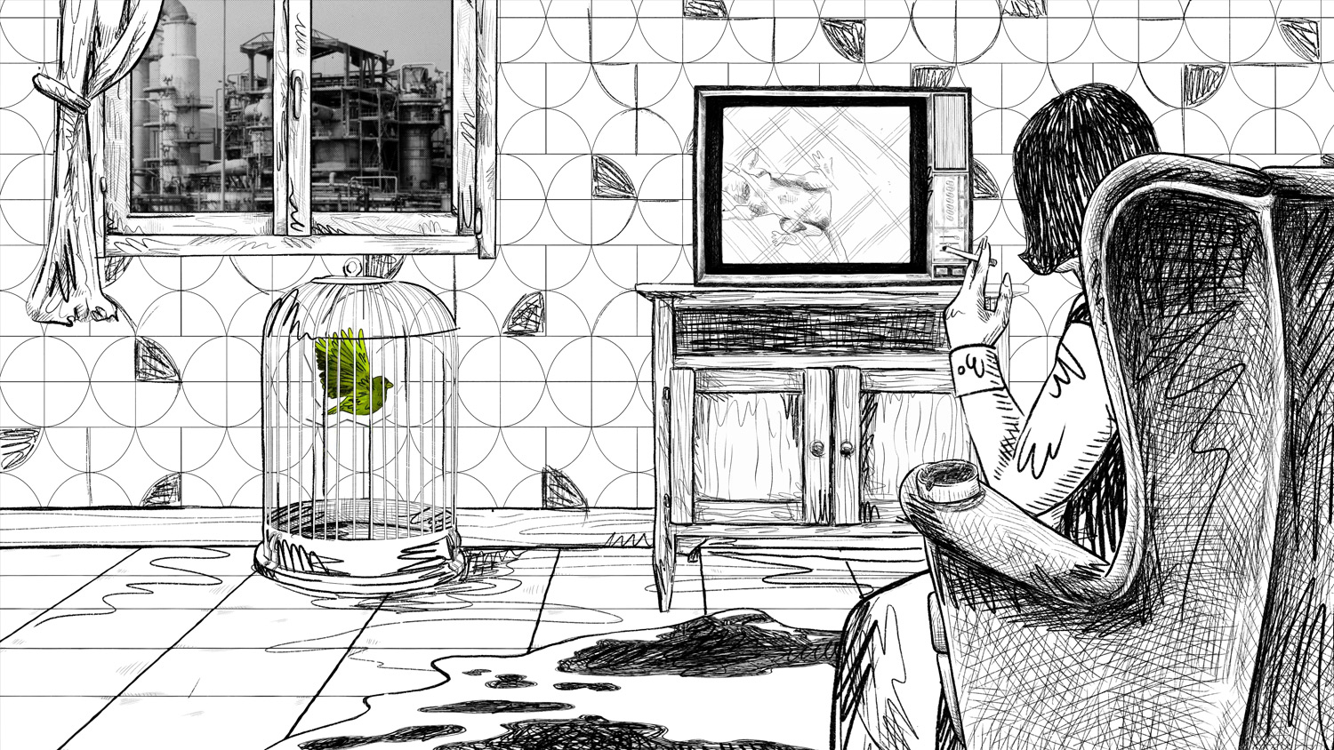 The protagonist of the video is the ZIA (in Italian, a pun between ZIA/AUNT and the acronym of Zona Industriale Apuana), a woman from Alteta (a district of Massa situated within the industrial zone), who is a personification of the Zona Industriale Apuana and its contradictions. With a character design based on herself, the artist gives voice to the project, interpreting both documents of the period and original texts. The illustrations and animations created by Corinne Ingegnieri and inspired by D.I.Y. punk graphics function as a frame narrative, marking the passing of time through the changes in the ZIA’s house and the transformations in the landscape seen from her window. They also serve as a connecting thread between heterogeneous archive materials such as Super8 films, VHS-C, newspaper articles, drawings, photographs, flyers and digital videos.
